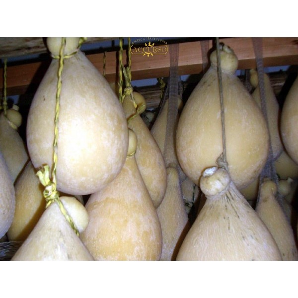 Formaggio a pasta filata da latte bovino,esclusivamente di razza podolica.Proveniente da allevamenti bradi o semibradi, con alimentazione basata principalmente sul pascolo.Di produzione locale a stagionatura variabile(da 15gg a più di 6 mesi),di forma globosa tipica,con testina e legatura di rafia,colore giallo paglierino,che tende a scurirsi con la stagionatura.Pezzatura di circa 1-2 Kg.